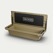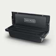 The DECKED Tool Box is compatible with CargoGlide, bringing a whole new level of accessibility. Plus, integrated storage trays keep essentials close at hand, built-in rails hold weatherproof D-co Cases, and Tool Hooks (sold separately) let you hang cords, hoses, and tools within easy reach.