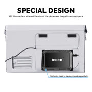 The ICECO APL35 Insulated Protective Cover is designed exclusively for the ICECO APL35 Portable Refrigerator, delivering added insulation and dependable protection for travel and outdoor use. The enhanced thermal layer helps maintain internal temperatures more efficiently, reducing overall power consumption on long trips. Constructed from durable, waterproof materials, it keeps your fridge safe from rain, snow, and everyday wear. For added convenience, the cover features three organizer pockets to keep essentials neatly stored. A unique string hook design allows easy lid access without removing the cover-smart design that works as hard as you do.
