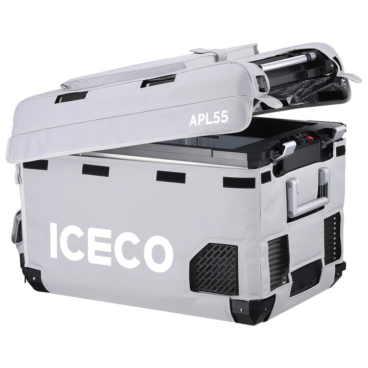 The ICECO APL55 Insulated Protective Cover is purpose-built exclusively for the ICECO APL55 Portable Refrigerator, delivering enhanced insulation and rugged protection for life on the road. The added thermal layer helps maintain internal temperatures more efficiently, reducing power consumption during extended trips. Constructed from durable, waterproof materials, it shields your fridge from rain, snow, and everyday wear. Designed with smart storage, the cover includes a battery pocket, divider pocket, and two organizer pockets to keep essentials within reach. A precision fit and hook-style lid access allow you to open the refrigerator easily without removing the cover-because good design shouldn’t slow you down.