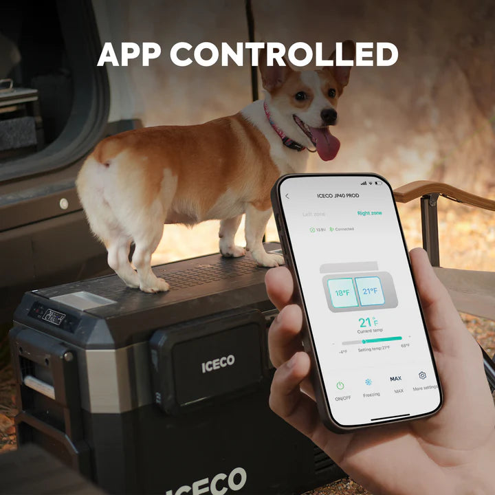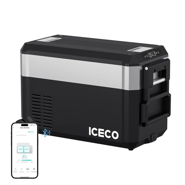 The ICECO JP Pro Series 40/51QT Dual Zone Wheeled Car Fridge is a premium portable cooling solution built for maximum flexibility on the road. Featuring independent dual-zone compartments, it allows you to run a fridge and freezer at the same time with a wide temperature range from -4°F to 68°F. Available in 40QT or 51QT capacities, this unit is designed with integrated wheels and a pull handle for effortless transport and includes an insulated protective cover to improve efficiency and durability. Finished in Silver and powered by a high-efficiency compressor with 12V vehicle and AC compatibility, the JP Pro Dual Zone delivers professional-grade performance for overlanding, camping, and extended travel—no ice, no compromises.