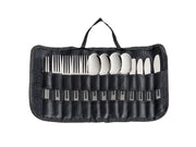 A 13-piece cutlery set for meals on the road. Includes a pair of chopsticks to cook with. Stainless steel flatware is dishwasher-safe for easy cleaning. The travel case folds flat for space-saving storage and converts to a standing display for table service.