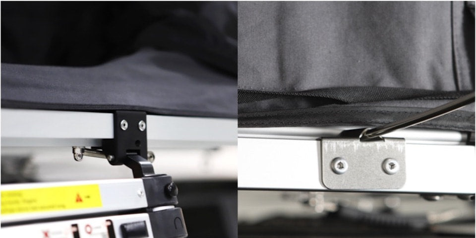 - Hardshell Lock Improvements Easier, quicker, and more secure locking method for closed tent. Locking latches now have hooks on the side of the hardshell in lieu of the bottom of the tent. This makes closing the tent much easier when mounted to flat rack systems like the Rhino-Rack Pioneer Platform or the Front Runner Slim Line II. 3.0 latches also offer adjustability. We love these latch upgrades here at Rhino Adventure Gear!