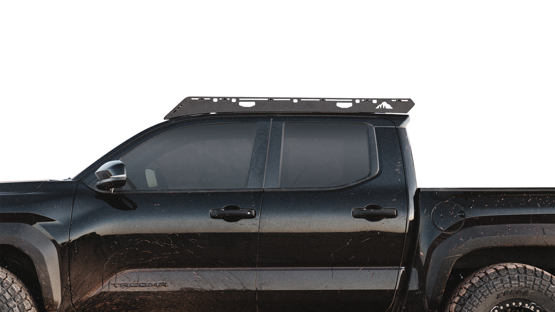 Adventure with Confidence with the best roofrack for your 2024+ 4th Gen Toyota Tacoma - The Rainier. Crafted from aircraft-grade aluminum and featuring stainless steel hardware, our rack systems are built to withstand any adventure. With a sleek and durable design, it's the perfect companion for all your expeditions. Safely secure your gear by fastening it to one of the seven extrusion crossbars or directly to the side plates - no drilling or vehicle modifications are needed for installation. Take your truck to the next level and upgrade your Tacoma Roof!