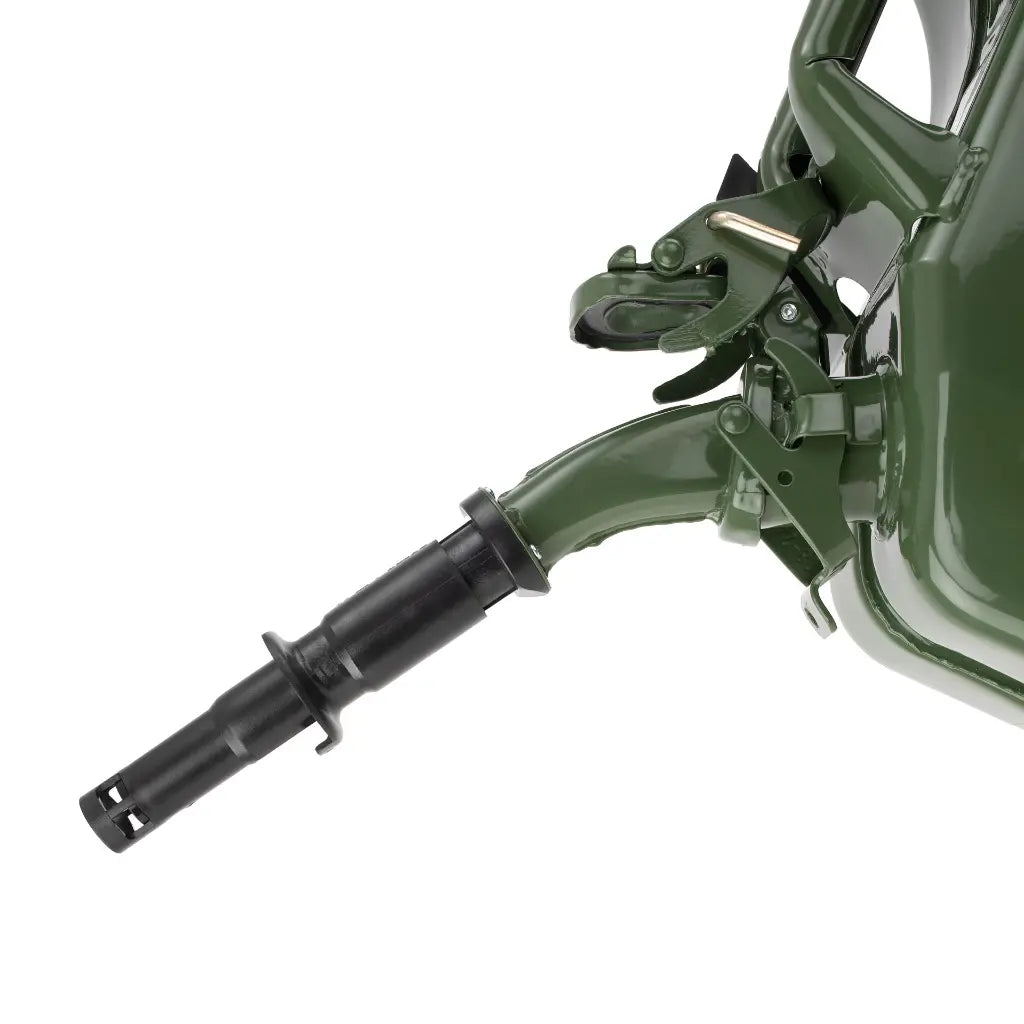 These leak-proof steel fuel cans come directly from the same manufacturer that has supplied many NATO countries for over 75 years and are the highest quality jerry cans on the market today. Rigorously tested, they boast a number of features: 0.9 mm steel walls, an interior rust-proof Rezol lining*, an internal breather pipe for splash-proof pouring, a three-handle configuration for easy carrying, a Leak-proof bayonet closure, and a locking pin for the cap.