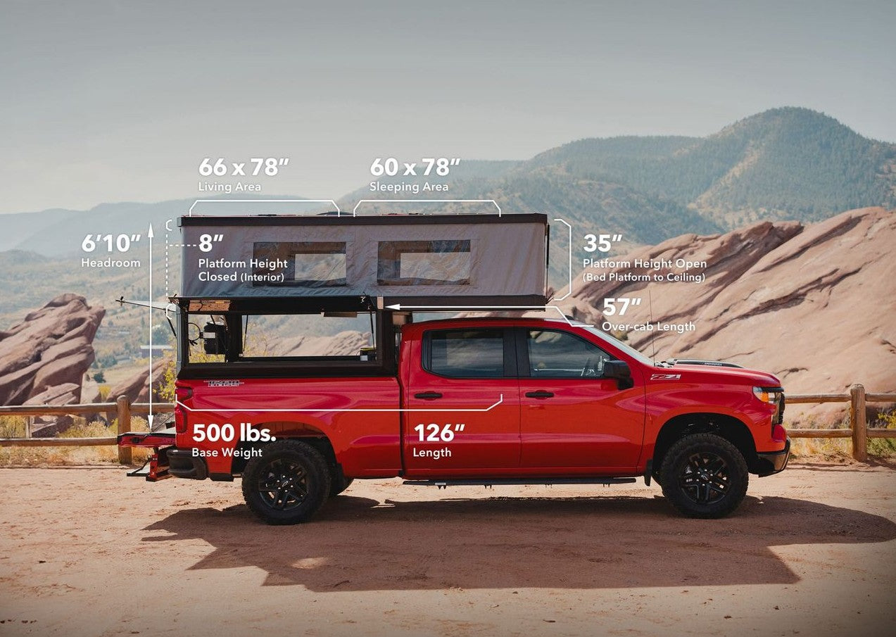 The M1 is an ultralight, durable truck camper that transforms your truck into a roomy, comfortable shelter. With generous headroom, an east-west queen bed (optional king extension), and 360° views, it redefines life on the road.