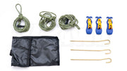 This kit has been designed for two main purposes, the first being additional anchorage in intense winds and stormy conditions, to better stabilize your Shadow Awning. The second is to prevent rainwater pooling on your Shadow Awning canvas, which can cause sagging, instability, and sub-optimal operation. It is simple and quick to setup/take down, as well as being small and light for transport/storage. A quite simple and effective extra for your Shadow Awning, Built Tough against extreme weather conditions.