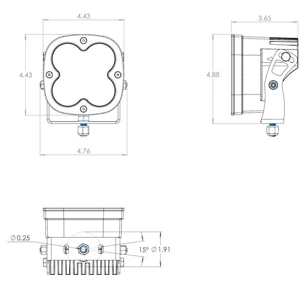 Standard Housing: 4.88” H x 4.43” W x 3.65” D