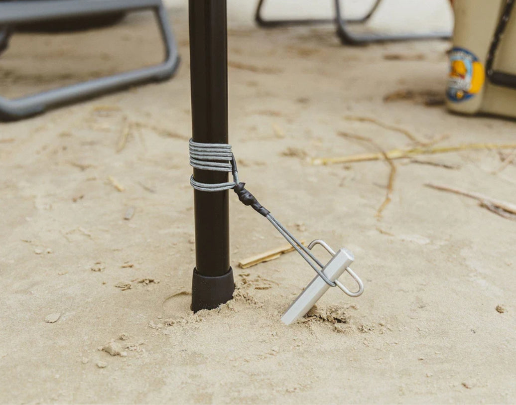 The base of the poles are equipped with non-slip rubber feet for pavement as well as a robust locking loop for staking to the ground.