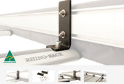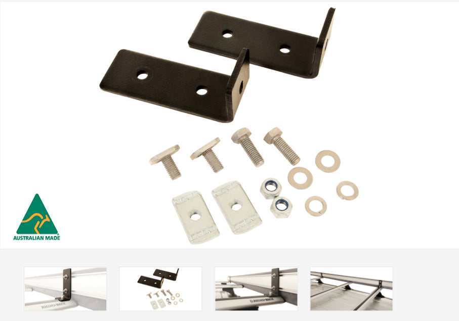 With the Universal Awning Bracket Kit you can now attach your current shade awning to a Rhino-Rack roof rack system. The Universal Awning Bracket Kit has been designed to fit Rhino-Rack Sunseeker and also non Rhino-Rack awnings to the Rhino-Rack Vortex, Heavy Duty Bars, Pioneer Platform and Pioneer Tradie. This product is easy to install; just slide the brackets into the cross bar channel and attach your awning. Made from 5mm mild steel and finished with zinc plating and powder coated black the Universal Awning Bracket Kit is strong, reliable and corrosion resistant.